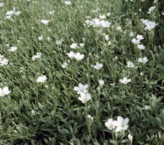 white creeper that forms a dense mat. Light gray felt foliage slowly