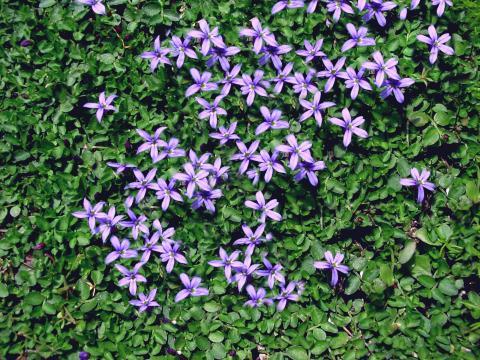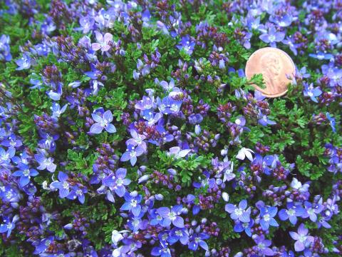 spread. Quickly forms a dense mat with deep blue or violet flowers with