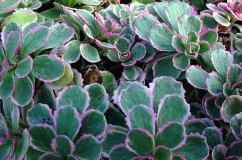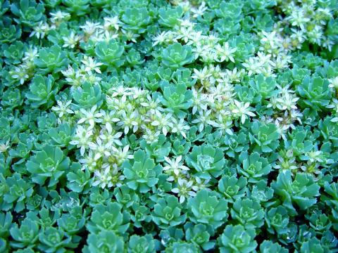Brilliant green and gold star shaped rosettes form nice clumps in the