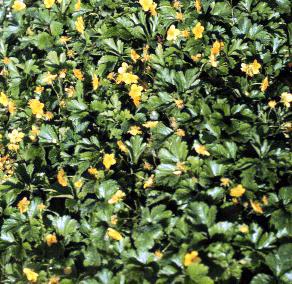 spread. Butter-yellow variegated foliage on trailing stems. Frequently